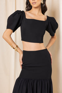 Elegant and refined, this high-waisted maxi skirt is crafted from structured crepe with a soft gathered detail at the lower panel for added movement and fluidity. The clean silhouette flatters the body while the gathered hem adds a romantic, modern touch. Perfect for pairing with the matching crop top or styled separately for versatile looks.