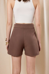 Chic meets function with these high-waisted utility shorts. Crafted from soft yet structured crepe, they feature statement flap pockets and subtle front pleats for a tailored look. The clean waistband and invisible side zipper offer a smooth, flattering finish—perfect for styling with crop tops or tucked blouses.