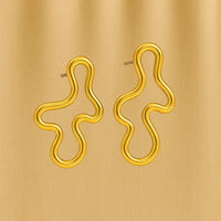 Artful and unapologetically bold, these abstract flow earrings are crafted with freeform curves that echo organic movement. Their unique silhouette and glossy gold-tone finish bring a playful sophistication to modern styling.